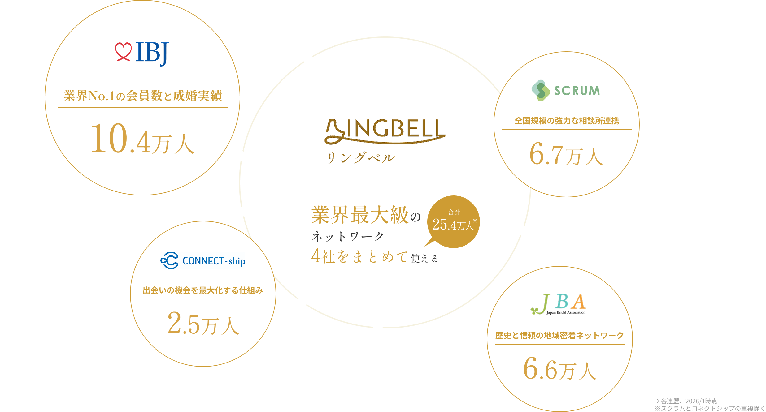 ※1 当社は、登録会員数、お見合い数、および成婚数No.1(※)のIBJの加盟相談所です。