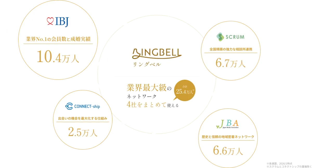 IBJ onlineは、業界最大手のIBJが運営するサービスで、「結婚相談所の真剣さ」と「マッチングアプリの手軽さ」を兼ね備えた、新しいカタチの婚活サービスです。IBJ加盟店としてはリングベルが初の加盟となります。