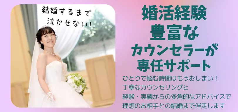 代表が専任で最後まで伴走し、少人数制で一人ひとりに丁寧に向き合う地域密着型。出張型のため店舗に行く必要がなく、近くのカフェやオンラインで気楽に相談できます。LINE・電話はいつでも相談OKで、恋愛初心者や20〜30代の初めての婚活にも相性◎。申込枠は代表プランで月50件、カウンセリングは月1回を基本に、日々のやり取りで気持ちの整理も支援。IBJ AWARDの受賞歴があり、活動設計や服装・デート提案まで「今やるべきこと」を具体化してくれるのが強み。妊活・不妊治療を経た双子ママのカウンセラーという背景もあり、妊娠や将来設計の不安を相談できる安心感も魅力です。