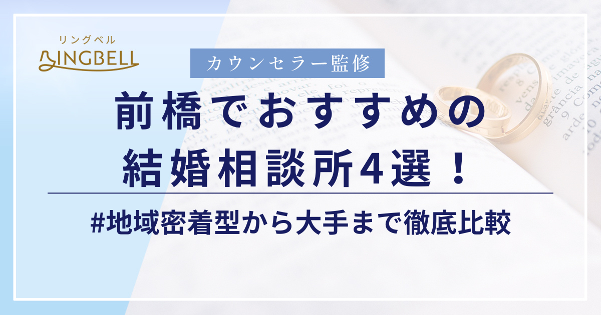 結婚相談所を運営するリングベルの視点で、本当に前橋で選ぶべき結婚相談所を選定いたしました。評価軸は、サポート体制、料金の透明性、所属連盟、実績、Google口コミです。