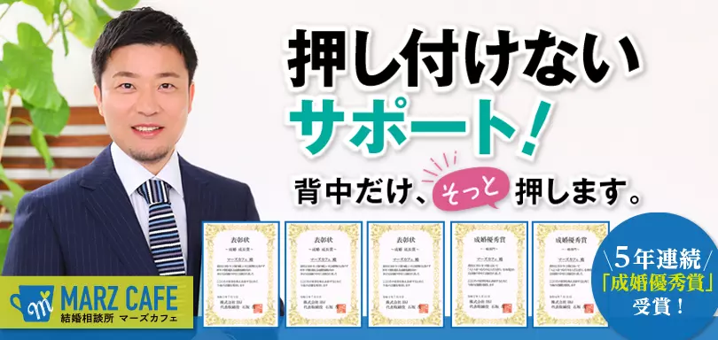 マーズカフェ | お見合い料込 | ¥363,000 | 入会¥55,000+登録¥22,000 | ¥11,000 | ¥220,000 | 12時間以内返信、面談随時 | 申込200件/月 |