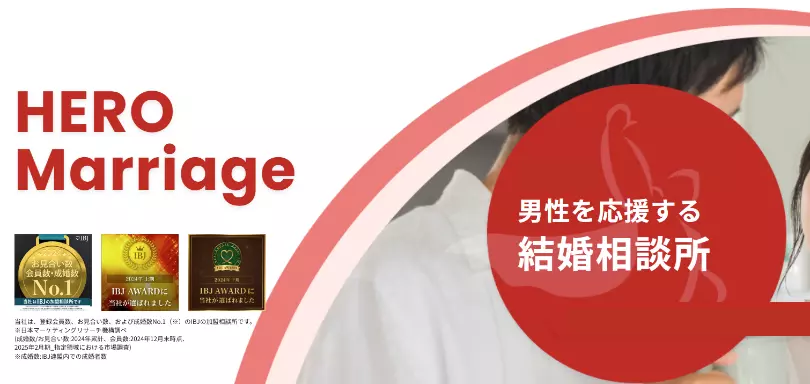 ヒーローマリッジ | スタンダード | ¥484,000 | 初期¥165,000 | ¥16,500 | ¥220,000 | 男性特化、月1回以上面談 | 撮影込み |