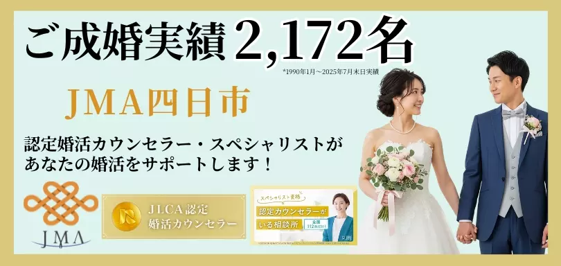 イオンタウン菰野を拠点に、四日市・桑名・鈴鹿など北勢エリアを広くカバー。アットホームで相談しやすい雰囲気と営業時間・定休日に縛られない柔軟サポートが強み。ベーシックとスペシャルの2コースで、申込枠やお見合い料の有無が選べます。オンライン面談も対応し、最初の一歩を踏み出しやすい価格帯。地元目線のきめ細かいフォローに期待できます。